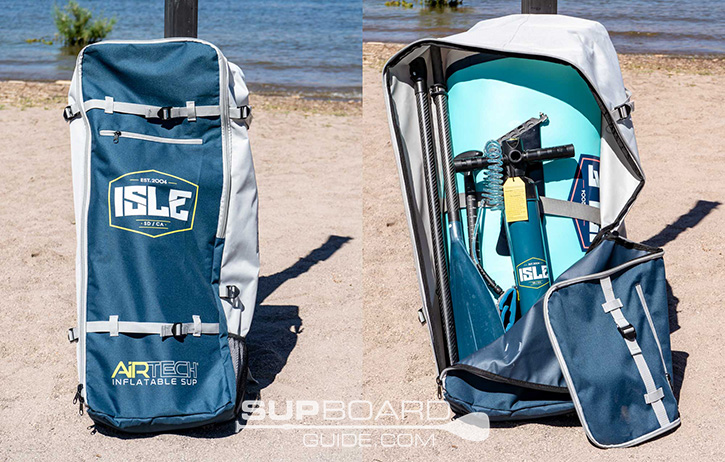 I like the backpack that comes with the Explorer a lot. The same as other Isle backpacks, you get a good size pack that easily fits the board, pump, and other accessories. In addition, you have a nice zipper pouch on the front for storing the center fin, leash, and other small accessories or snacks. The front zipper pouch might seem like something small, but it really is nice to have over time.
